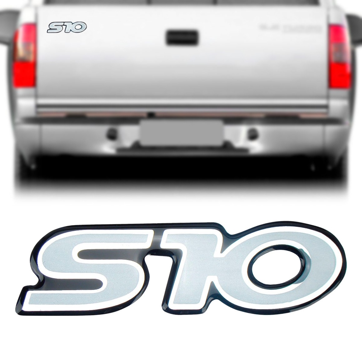 EMBLEMA (S10) GM S10 96/ PRATA E CONTORNO PRETO (RESINADO)
